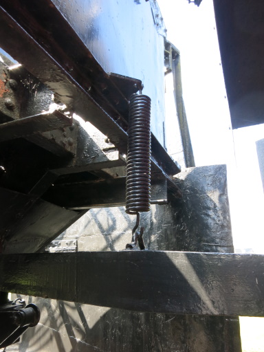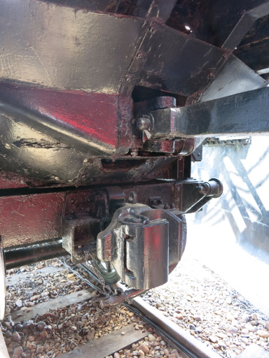 連接棒は、マックレー車側にバネで吊るされているように見えました。ロータリー車と連接棒を切り離した際に、このバネで連接棒の重みを支える目的でしょうか。